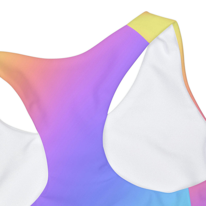This cute two-piece, stretchy activewear set is ideal for dance class or for the swimming pool, making it a versatile wardrobe essential. The top is fully lined for good coverage and the booty shorts have a comfortable, high-waisted fit to keep you feeling secure.
